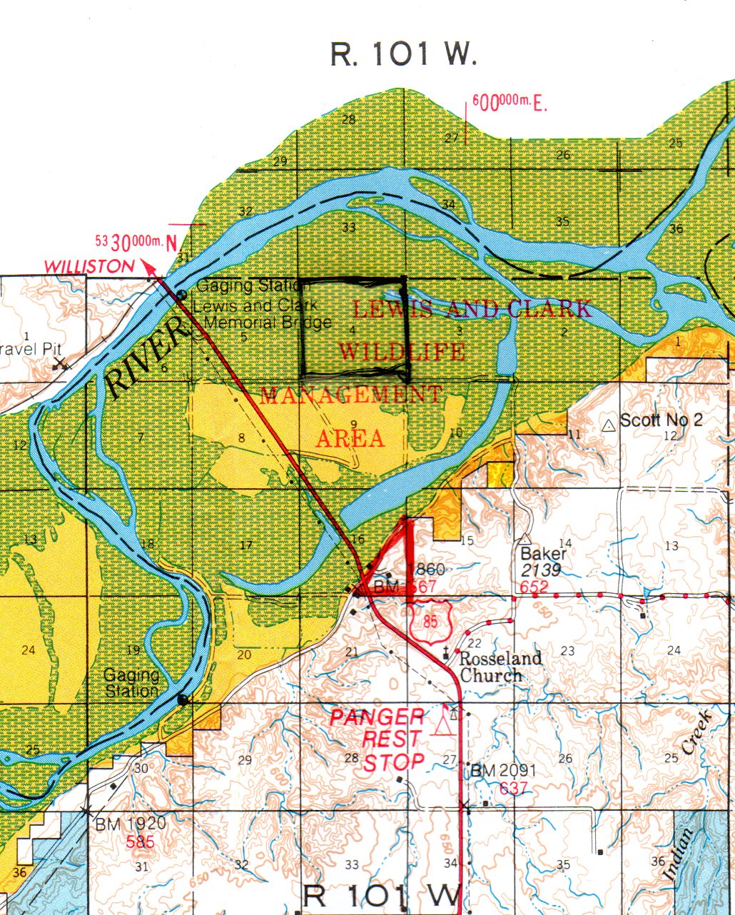 If you don’t know about the Lewis and Clark State Wildlife Management Area, let me tell you where that is. If you’re driving up U.S. Highway 85, just before you get to Williston, about 5 or 6 miles south of town, where Highway 85 bends a little toward the northwest, you’ll drive through a big wetland area on both sides of the road. As far as you can see, on either side of the road, is the Lewis and Clark Wildlife Management Area. Together with its sister WMA, Trenton, there’s about 15,000 acres of nothing there except wetlands and wildlife. It’s all Missouri River bottomland, the extreme upper end of the Garrison Dam Reservoir, which we know as Lake Sakakawea. It’s the spot where the river turns into a lake. And it floods from time to time. It was completely submerged during the flood of 2011.
