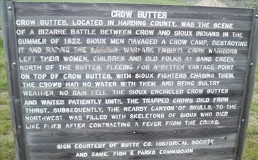 Background: In the middle of no-damn-place, alongside of U.S. Highway 85 in South Dakota, about halfway between the South Dakota Badlands and the North Dakota Badlands, a couple of modest-sized (by Dakota standards) buttes rise above the prairie. These are the Crow Buttes. The country rolls a bit there, but you can see them from a few miles away as you drive north, headed back to North Dakota after a trip to the Black Hills or some other destination west of the Little Missouri and Belle Fourche Rivers.