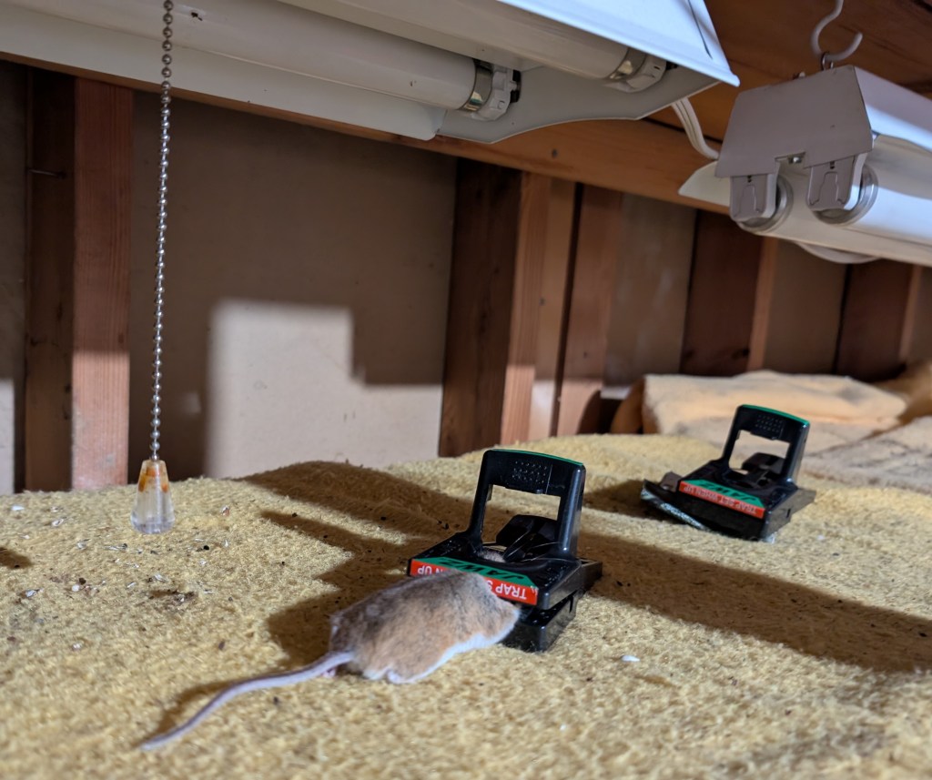 We’re a little prone to mice this time of the year. They get active, find their way in through cracks in our old foundation, often roaming around the basement. Lillian sets traps, and we get one once in awhile, but they are wary little creatures. And they are also hungry.