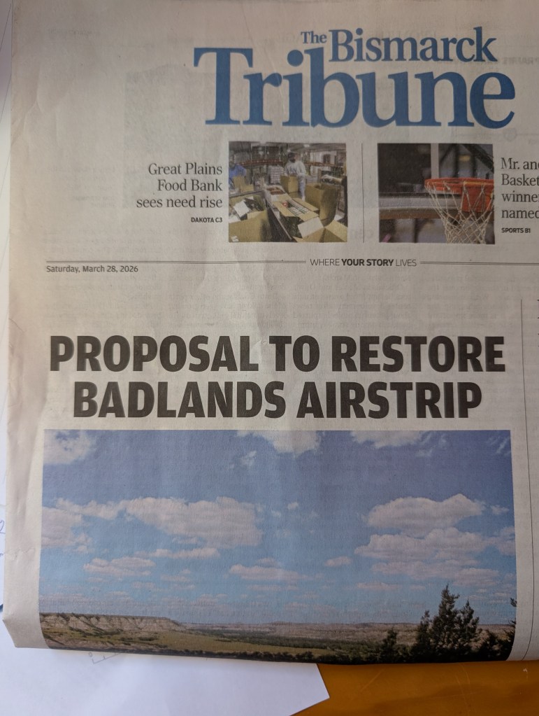 But the outline of it is still visible there, at least from the air, and now a group called the Recreational Aviation Foundation (RAF), headquartered in Montana, but with a spokesman here in North Dakota who knows the area, wants to “rebuild” the airstrip so they can land their small planes there and spend some time in the Bad Lands. Rebuilding just really means clearing the area of grass and brush and trees so it’s safe to land their Cessnas and Pipers there.